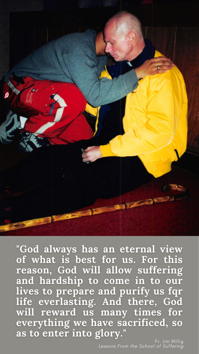 April 29, 2001: Fr. Jim blesses Holy Water prior to blessing the new Heart to Heart offices in Reading, OH less than two months before going home to God. Remaining Schedule Week of June 20 – Daily videos from the Passion and Resurrection of Our Lord Jesus Christ in addition to daily quotes from Fr.…